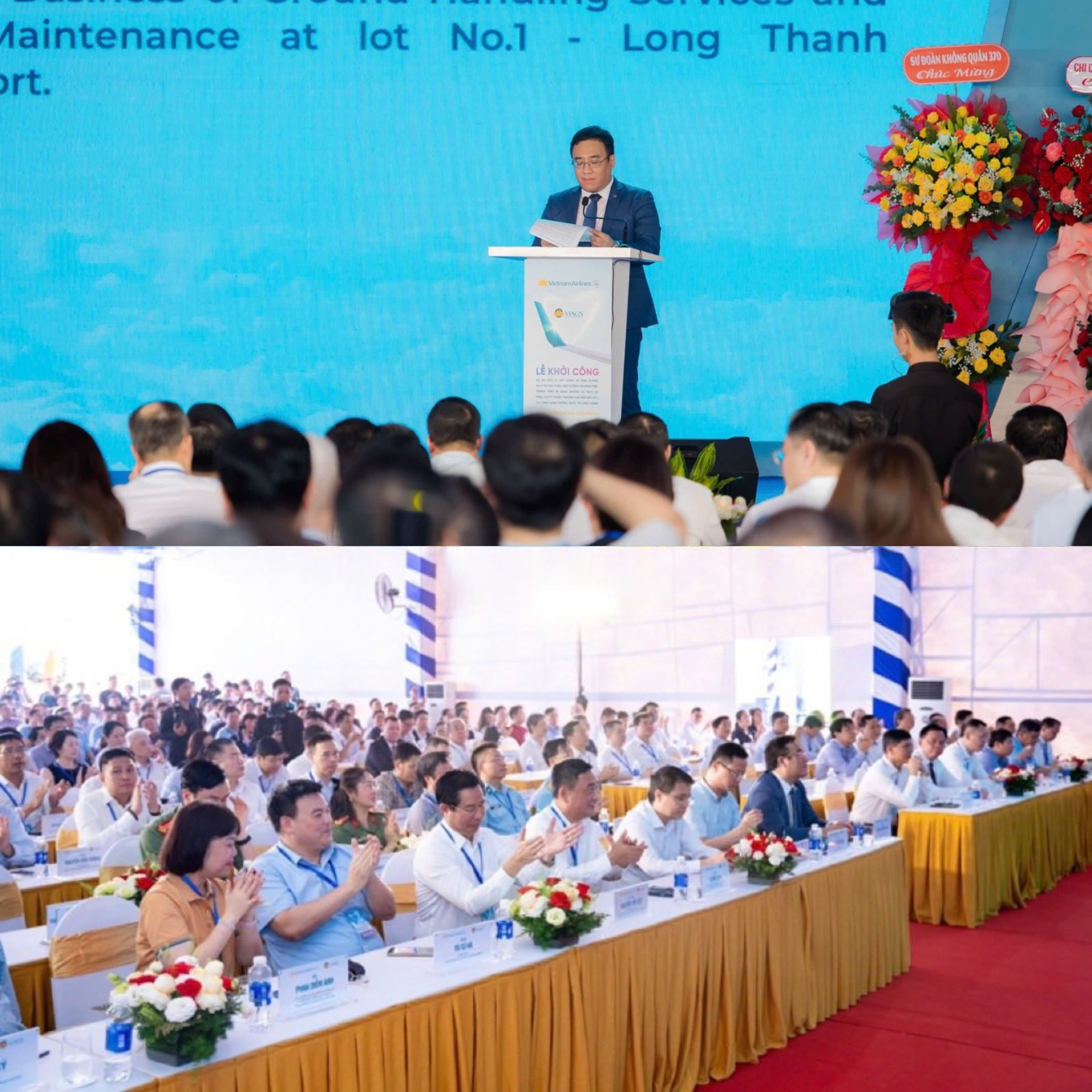 Phát biểu tại buổi lễ, Ông Nguyễn Xuân Phúc, Ủy viên BCH Đảng bộ TCT HKVN, Bí thư Đảng ủy, Tổng Giám đốc VIAGS nhấn mạnh: "Cảng Hàng không Quốc tế Long Thành là công trình hạ tầng trọng điểm quốc gia, được quy hoạch với tầm vóc của một trung tâm hàng không quốc tế hiện đại. Việc VIAGS mở rộng hệ thống sân bay căn cứ đến Long Thành, không chỉ đánh dấu một cột mốc quan trọng về quy mô và năng lực khai thác, mà còn có ý nghĩa chiến lược đối với sự phát triển bền vững của Công ty trong giai đoạn tới. Dự án thể hiện tiềm lực mạnh mẽ, cũng như định hướng dài hạn, bài bản của VIAGS, từng bước khẳng định vị thế của Đơn vị hàng đầu về dịch vụ mặt đất hàng không tại Việt Nam".
